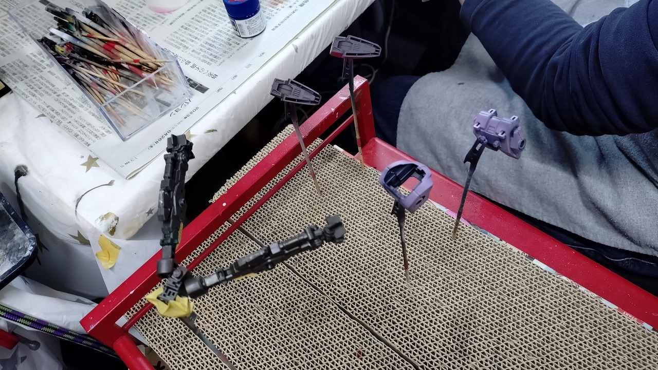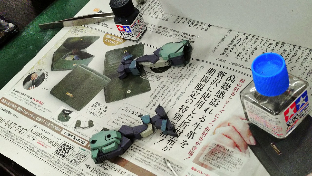 ただ、関節パーツなどの墨入れをするときは、余計な塗料がパーツとパーツにはいらないようにしないと