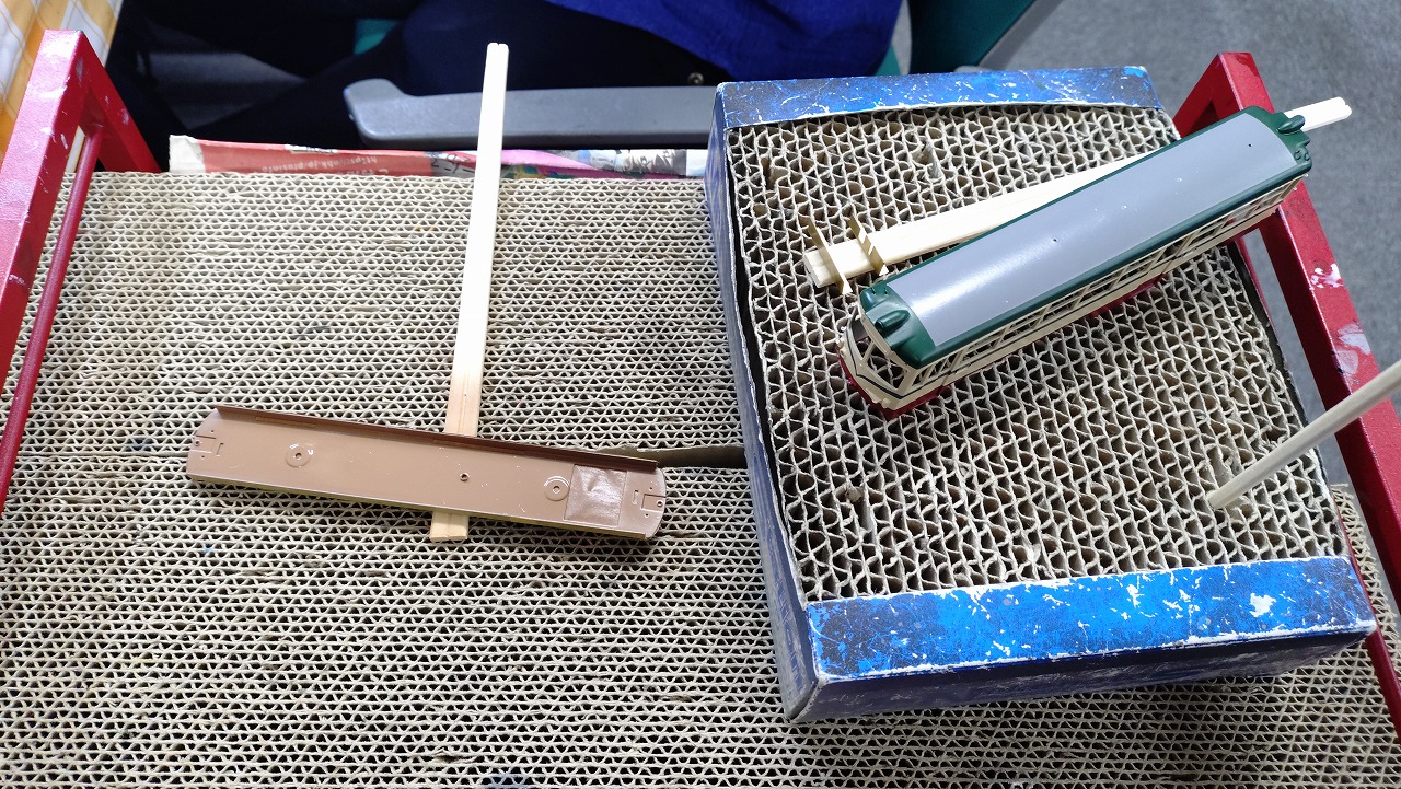 Sさんも2回目のご来店です。前回の続きで、とさでんの路面電車の塗装をされましたよ~。