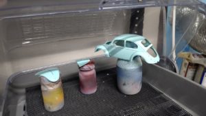 昨年のモデフェス前に、作品の艶消しクリアを吹きに来てくれたR君。