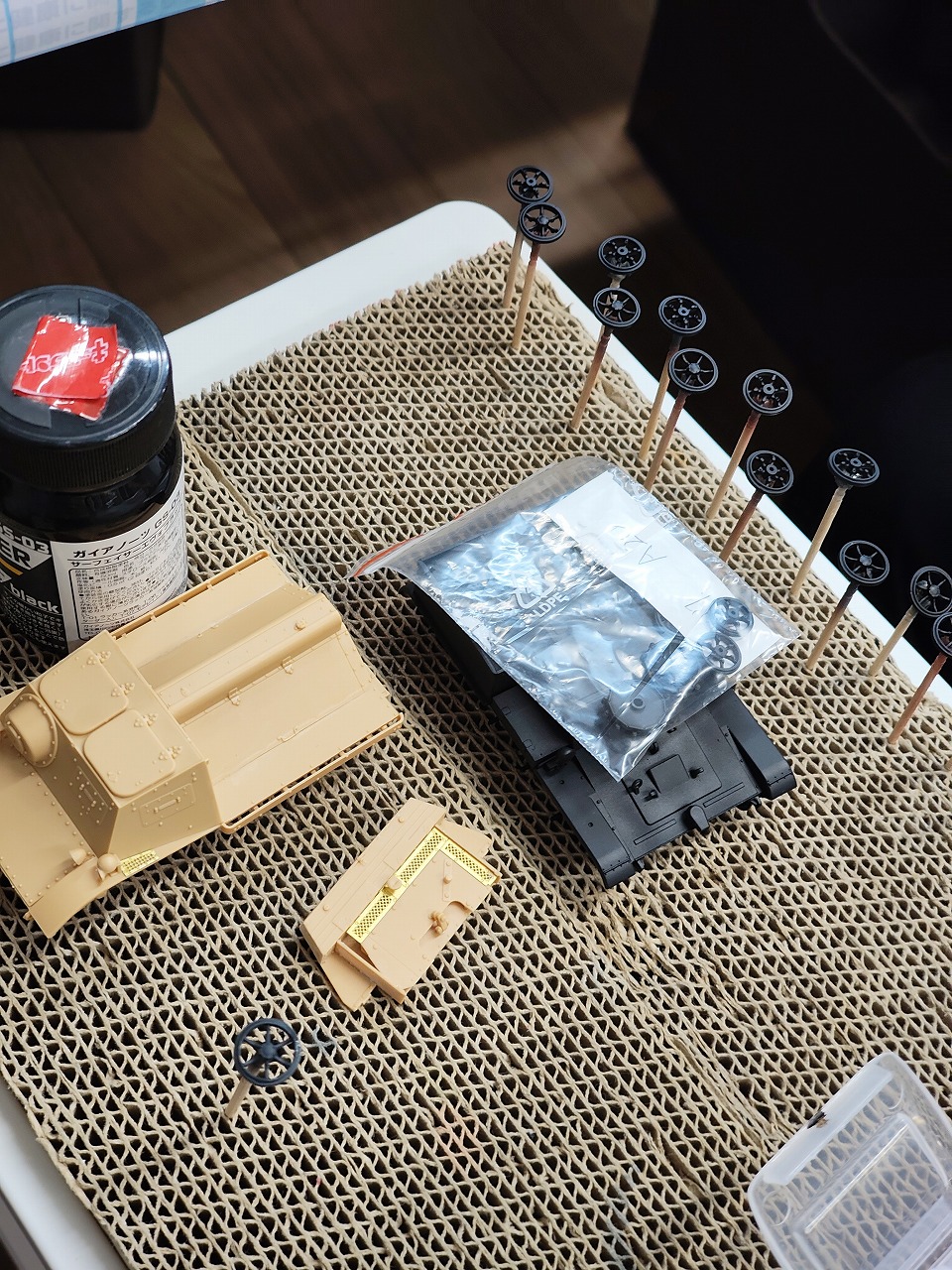 この瓶、戦車やカーモデルを塗装するのに便利なんですよね。