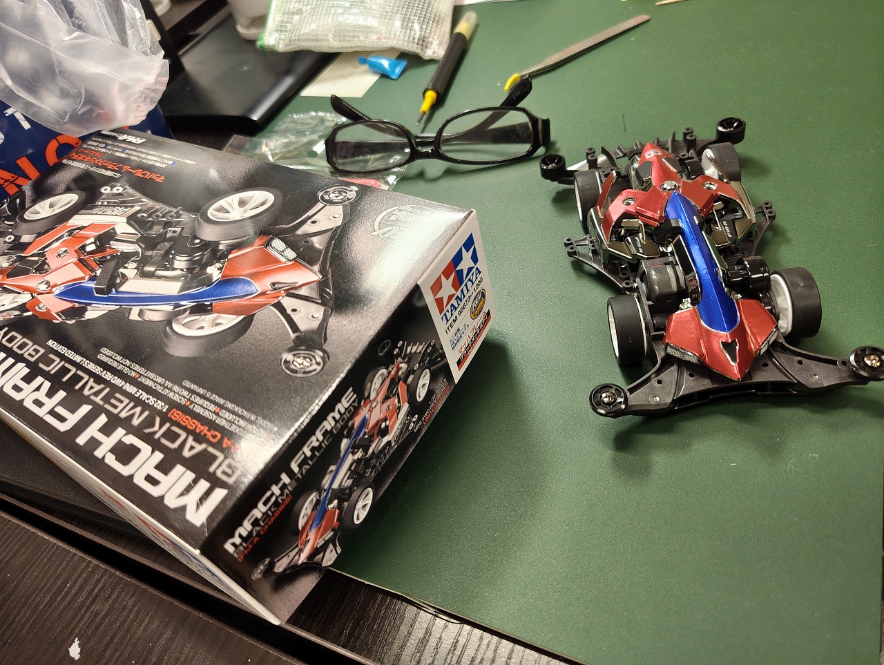早速、ミニ四駆マッハフレームのブラックメッキボディ版をぱちぱちっと。
