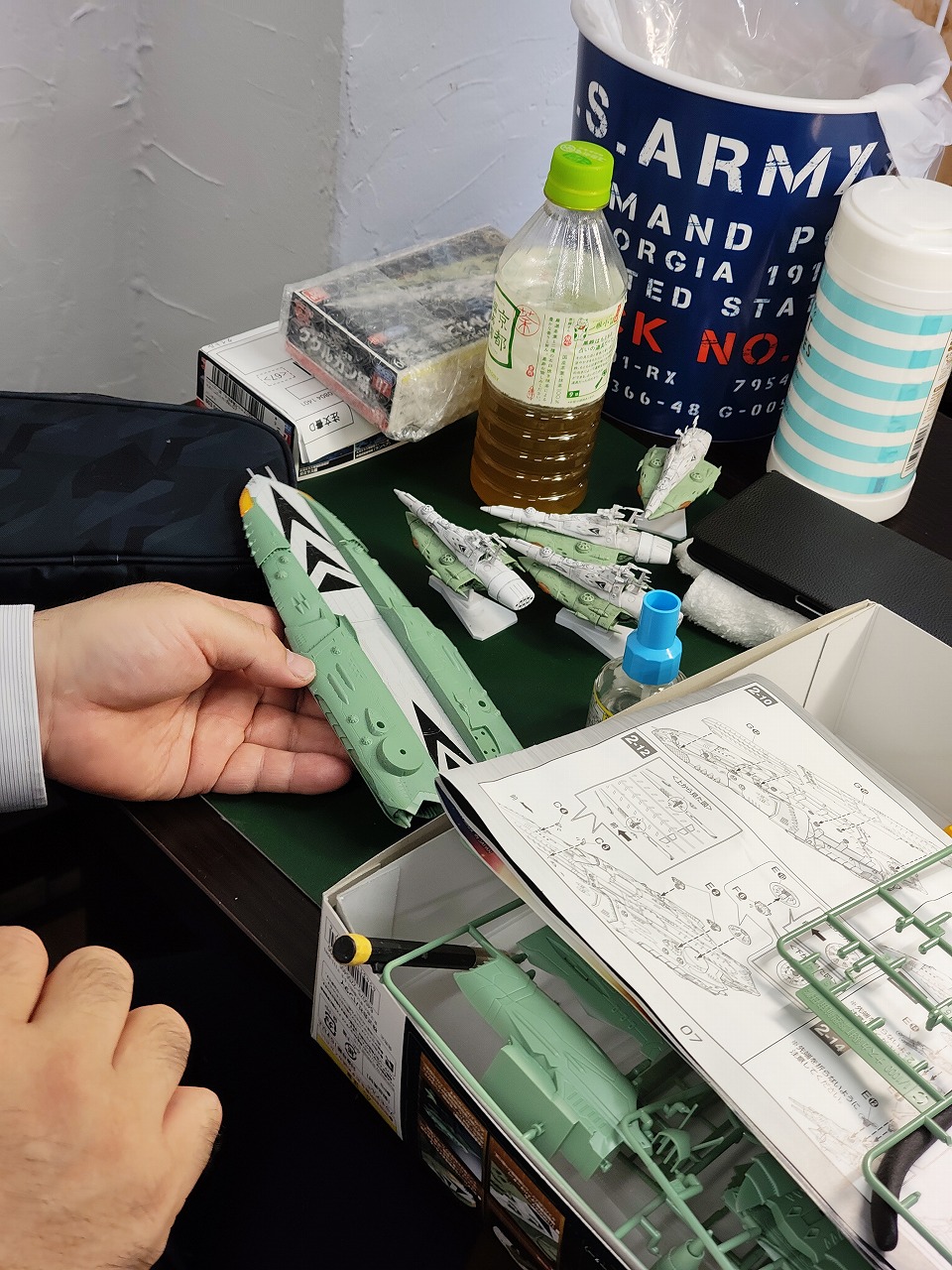 ミサイルが一体パーツになってるのをどうやってきれいに塗装するか悩んではりました。