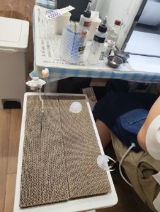 UKさん、この日は髪の毛の塗装に挑戦ですよ。
