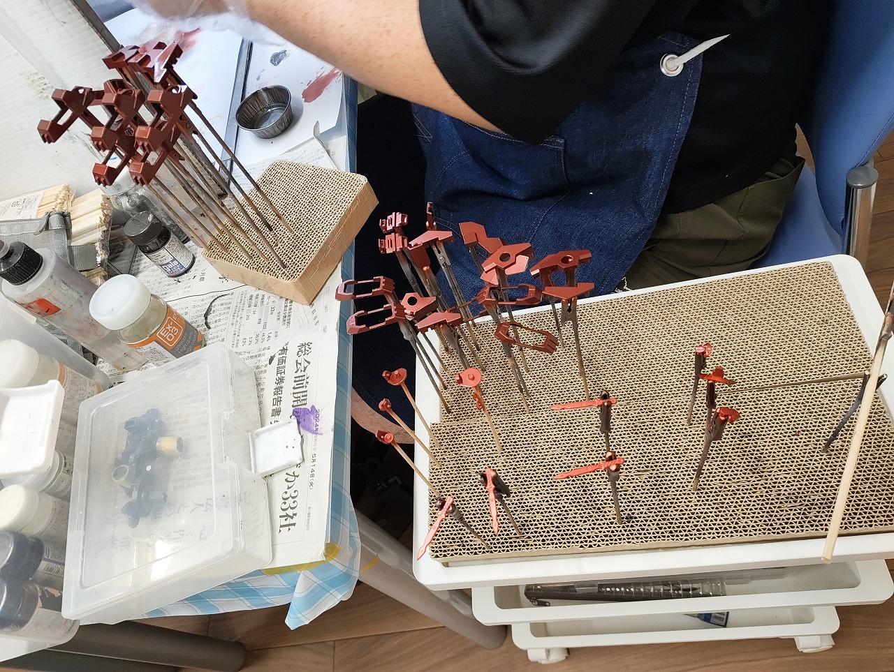 めちゃくパーツ数があるのでいくつものプラケースにわけて持ってきてはります。