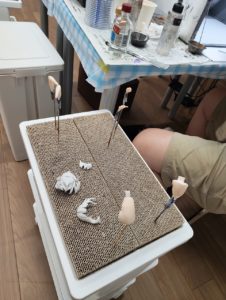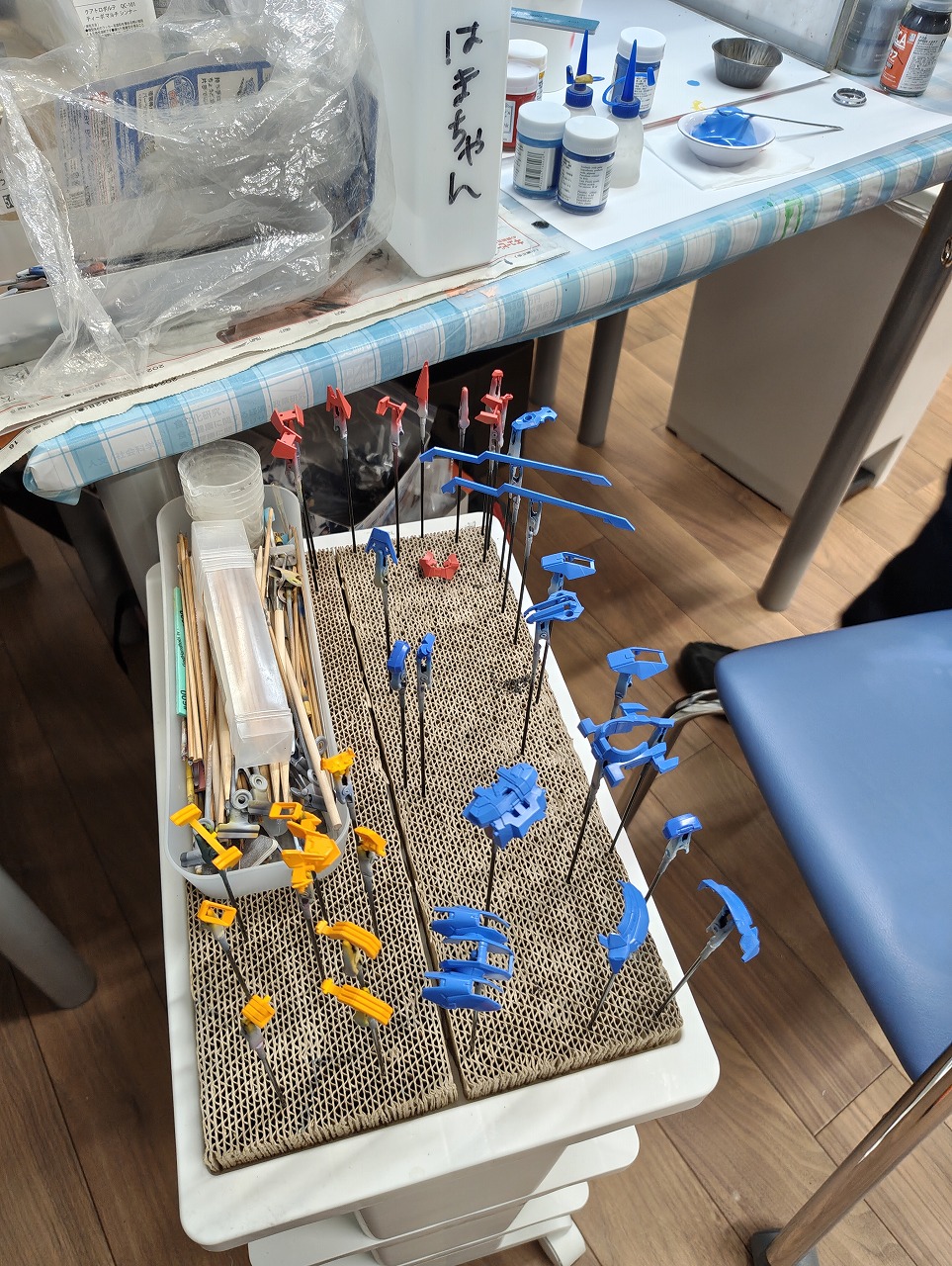 はまちゃんは、モデフェスにむけて作品の塗装作業ですよ。