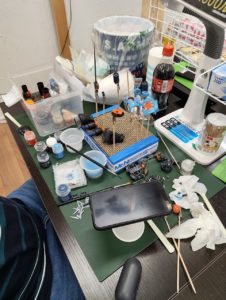 この日は、はじめてのエアブラシでミレニアムファルコンをグレーに塗装されました。