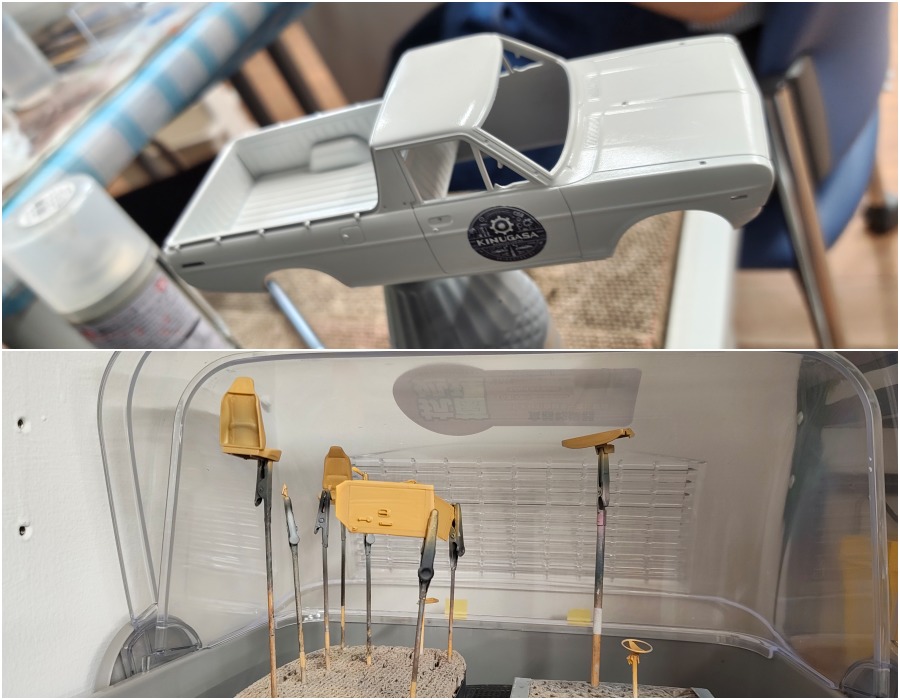 自作デカールの段差をなくすために、ボディにクリアを吹き重ねてはりました。