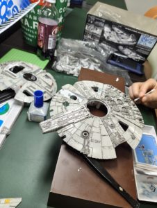ジョウジさんは、ミレニアムファルコンのデカール貼りです。
