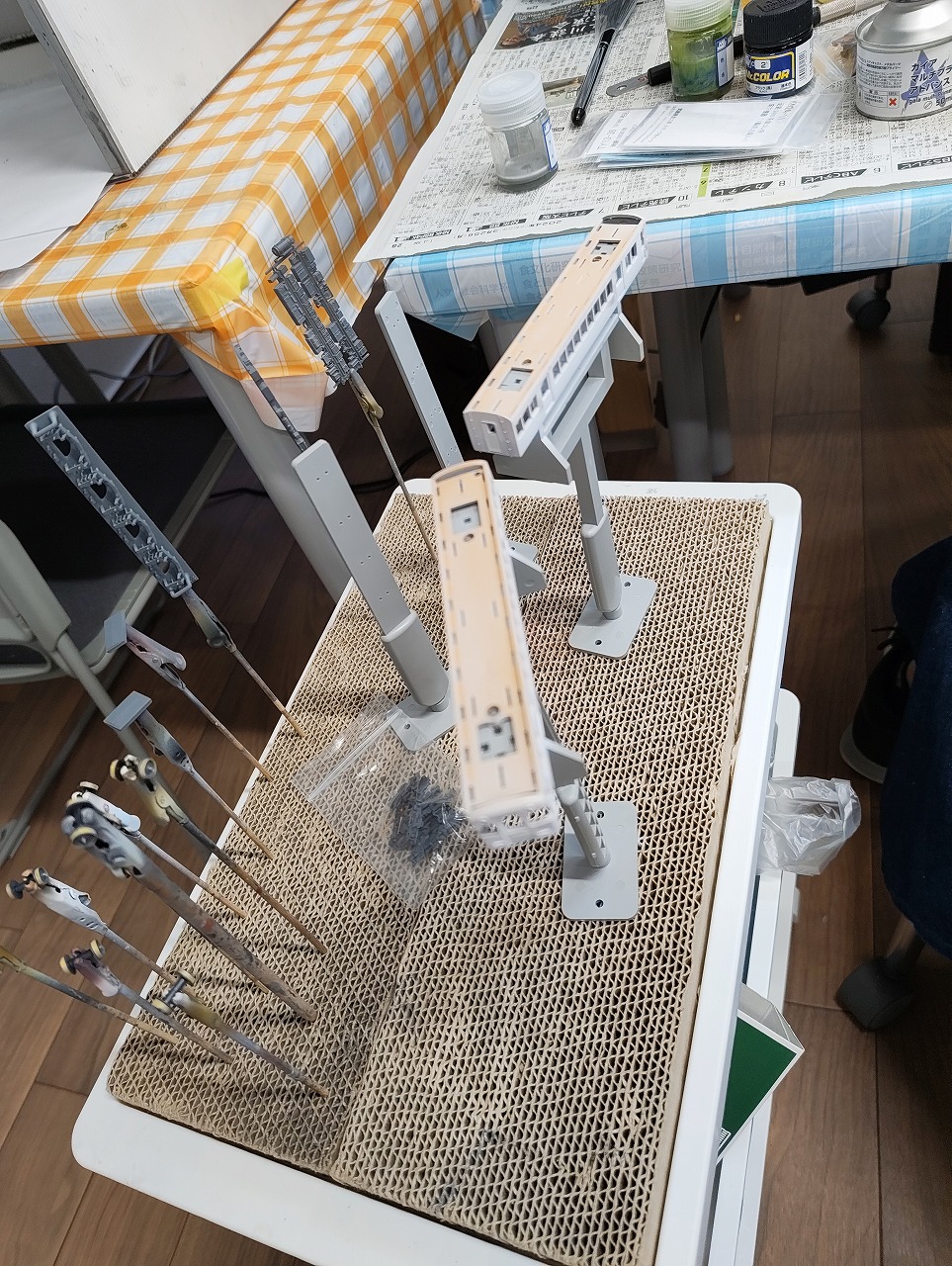 OYくんは、鉄道模型の塗装にきてくれましたよ。