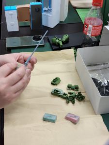 クレオスの真溶媒液をいれて柔らかくなってから塗装されましたよ。