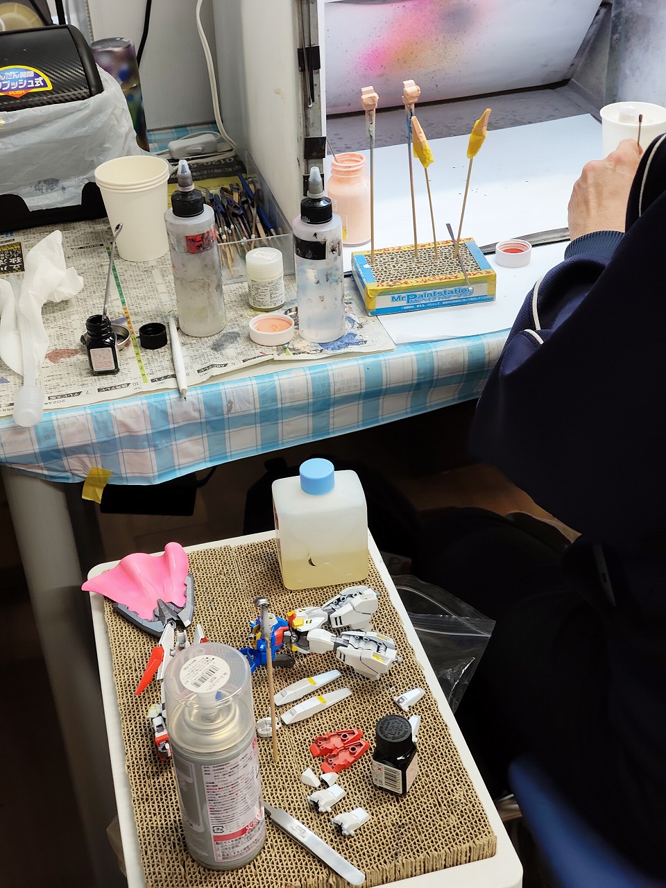 隆さんは、ガンダムTRYAGEマグナムの塗装ですよ。